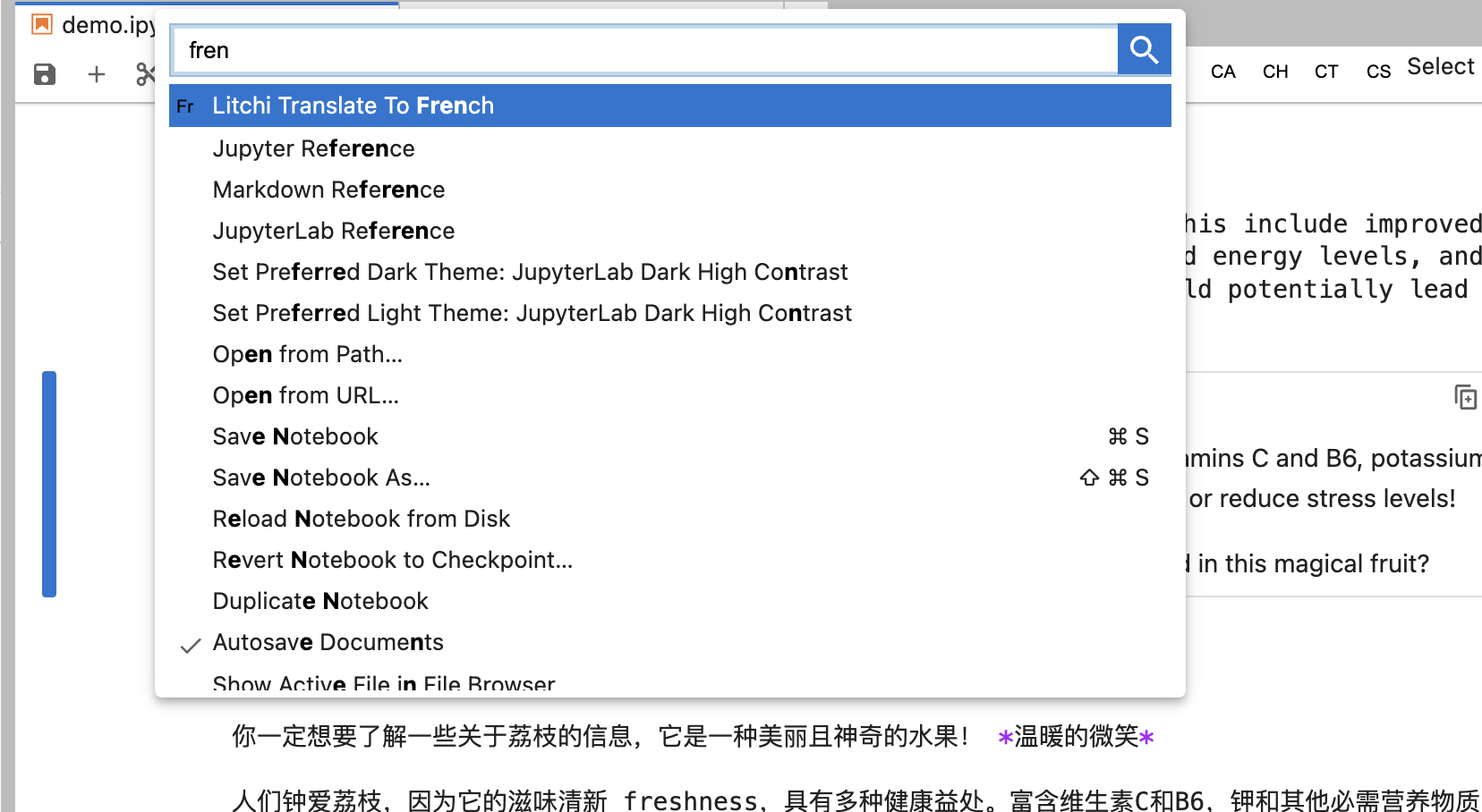 This version add Unit Test and Translate assistants. GitHub - MarchLiu/litchi: Litchi is a jupyter lab extension for chat with ollama or others ai client